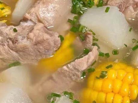 排骨,白蘿蔔,玉米,薑片,大蔥,蔥花。