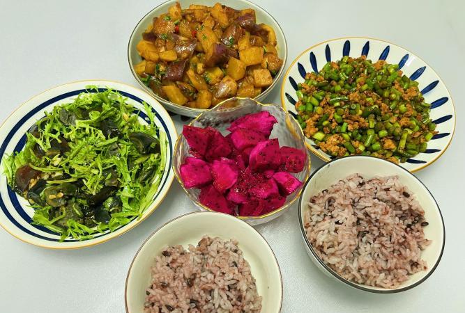 電飯煲“叮”的一聲跳閘時,火龍果剛切好,粉嘟嘟的果肉襯著白米飯,像雪地裡開的花。看著爺倆搶最後一塊皮蛋,忽然想起奶奶的話:“家常菜吃的就是個順手。”這三個菜譜就像家裡的老物件,看著不起眼,可每道都藏著讓人惦記的魔法——也許是掰茄子時指甲縫染的紫,也許是炒蒜薹濺在手背的油星子。這些細碎的煙火痕跡,才是讓家常菜永遠吃不膩的訣竅啊。